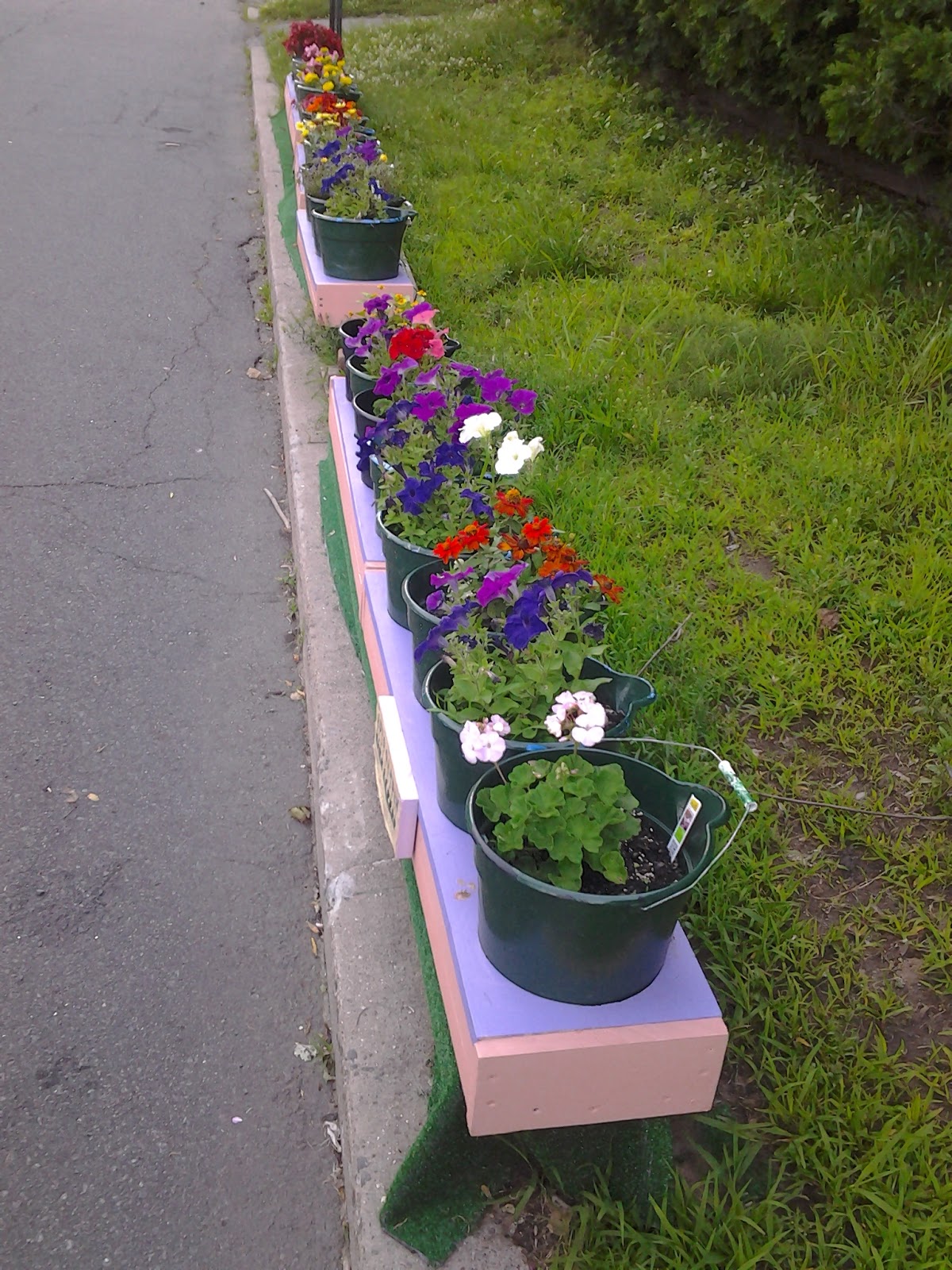 | AutoGardens (24 pots in 6 racks) along the street in Nyack NY. No need for water controllers yet |